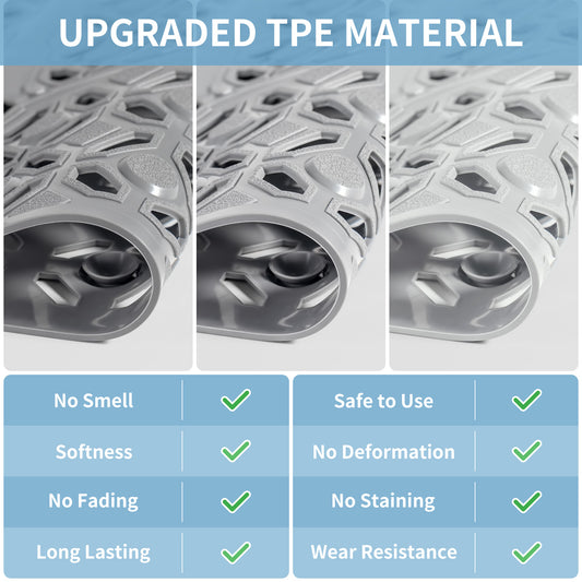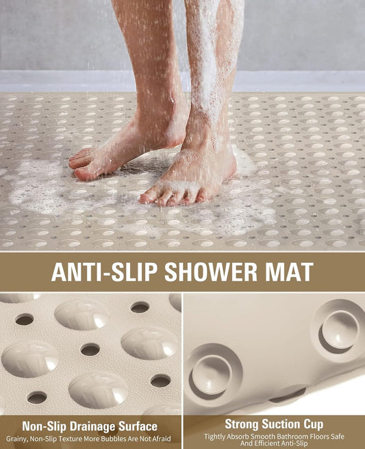 Yolife Extra Large Shower Mat 47.2x31.5" - TPE Non-Slip Bath Mat w/Suction Cups & Drain Holes, Heavy Duty for Shower Stall, Odor-Free