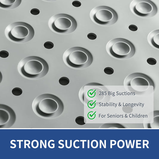Yolife Large Shower Mat, 47" x 32" Non Slip Shower Mats for Inside Shower with Drain Holes and Suction Cups, No Odor Soft Shower Floor Mat, Grey