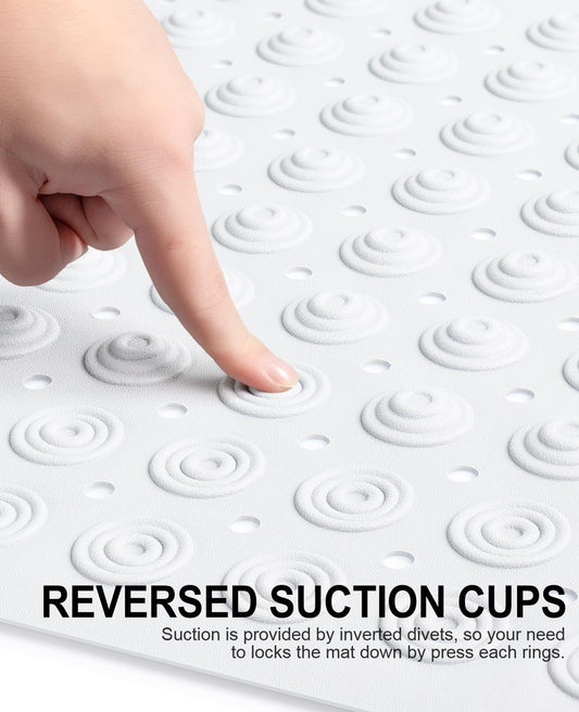 OTHWAY Large Shower Mat, 47x32 TPE Anti Slip Shower Mat, Heavy Bath Mats for Shower with Drain Holes Suction Cups, Shower Stall Mat for Bathroom, No Odor Shower Grip Mat for Elderly Kids(W-White)
