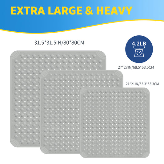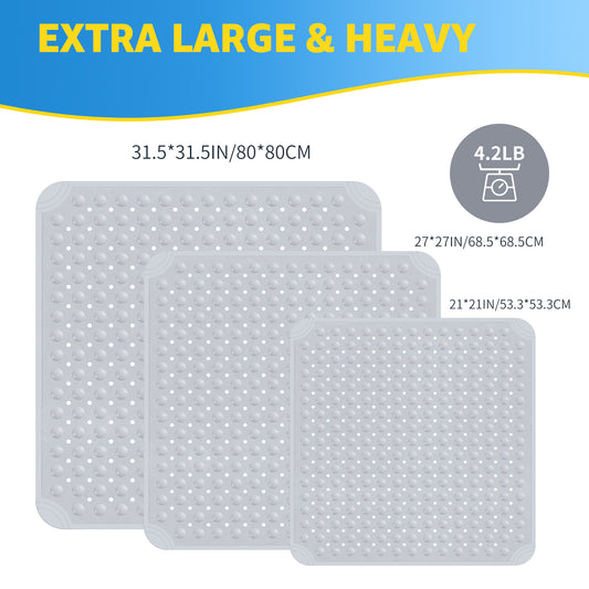 Yolife Extra Large Shower Mat 31.5x31.5" - TPE Non-Slip Bath Mat w/Suction Cups & Drain Holes, Heavy Duty for Shower Stall, Odor-Free