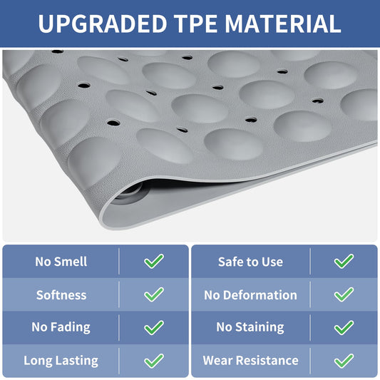 OTHWAY Extra Large Shower Mat 47"x 32", TPE Non Slip Shower Mat for Shower Stall, Inside Walk in Shower Mats with Drain Holes Suction Cups, Anti-Slip for Elderly Kids (Dark Grey)