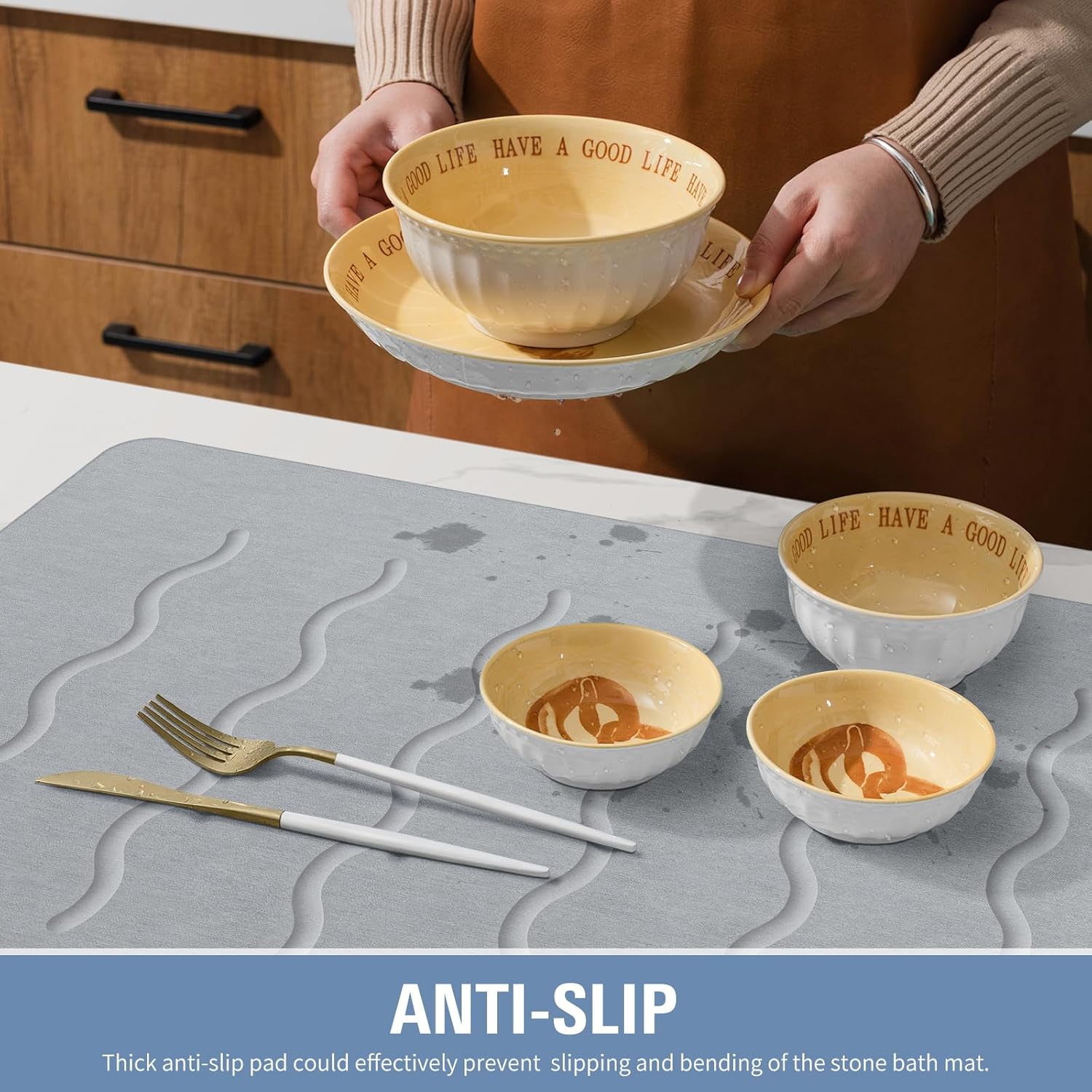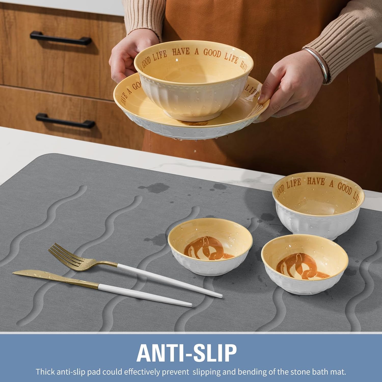 OTHWAY 32"x 20" Stone Bath Mat Large, Diatomaceous Earth Bath Mat for Bathroom Quick Drying Absorbing, Long Non-Slip Diatomite Hard Stone Shower Mat Instant Dry