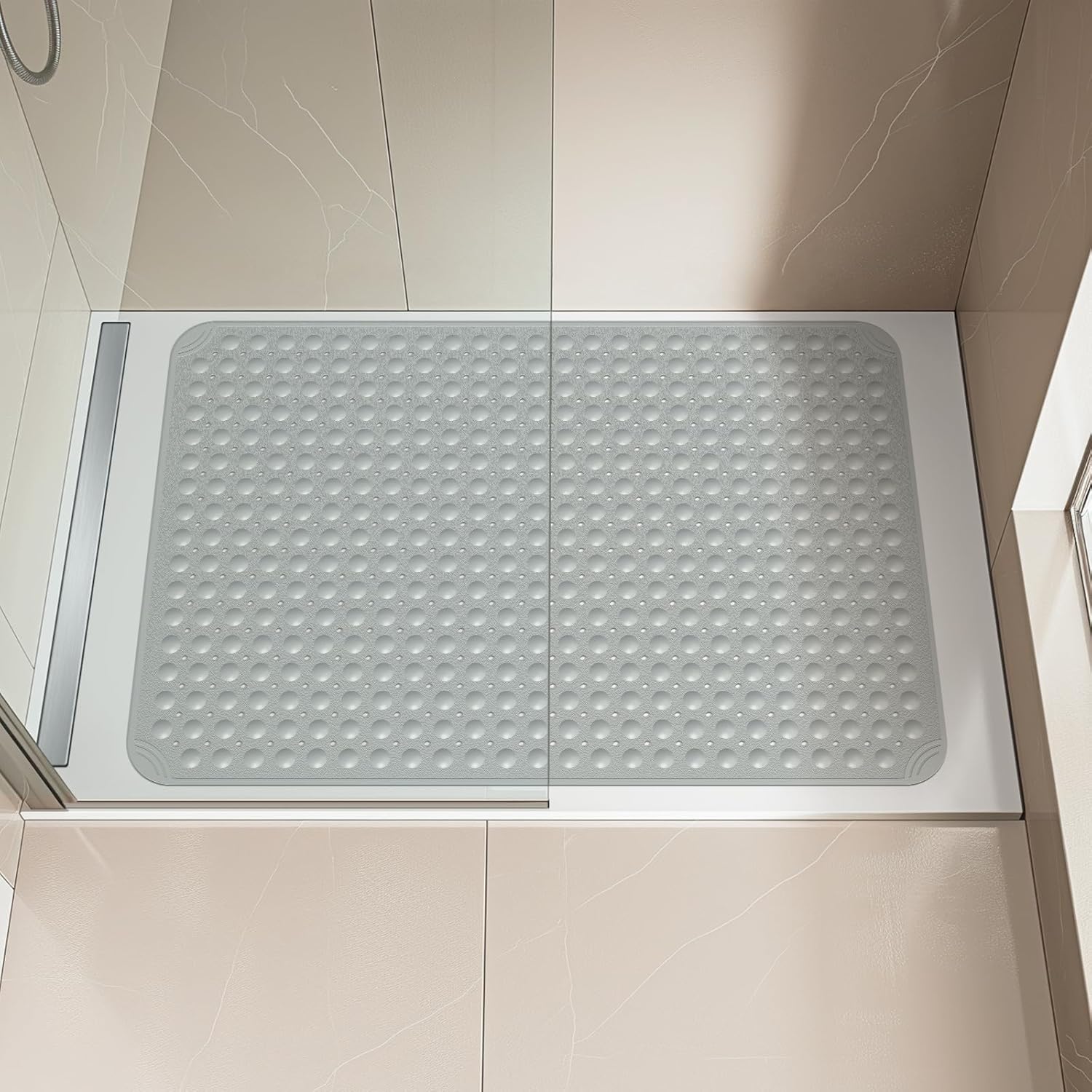 My parents are elderly and recently had a new shower installed. The floor is super slippery, and I couldn’t find a mat in stores large enough for the new shower, and the ones I did find slid around because they only had 4 big suction cups in the corners.I got them this mat and it is fabulous! It has dozens of smaller suction cups, so it stays in place like a champ, and the surface is textured, so you can’t slip on it. I have a lot more peace of mind with this shower mat in place.