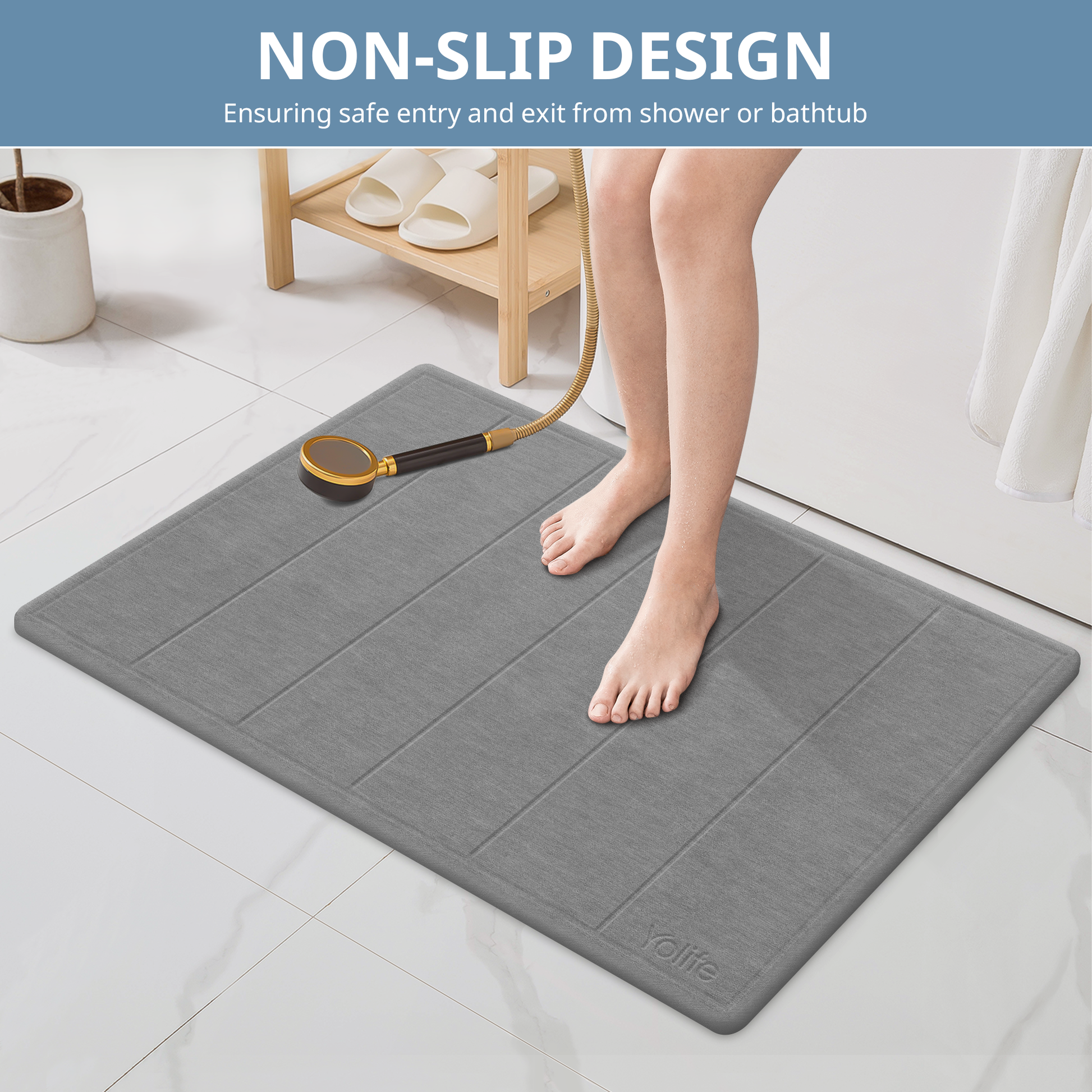 The Yolife Diatomite Bath Mat is crafted from natural diatomaceous earth, delivering exceptional absorbency and quick-drying performance for your bathroom space.