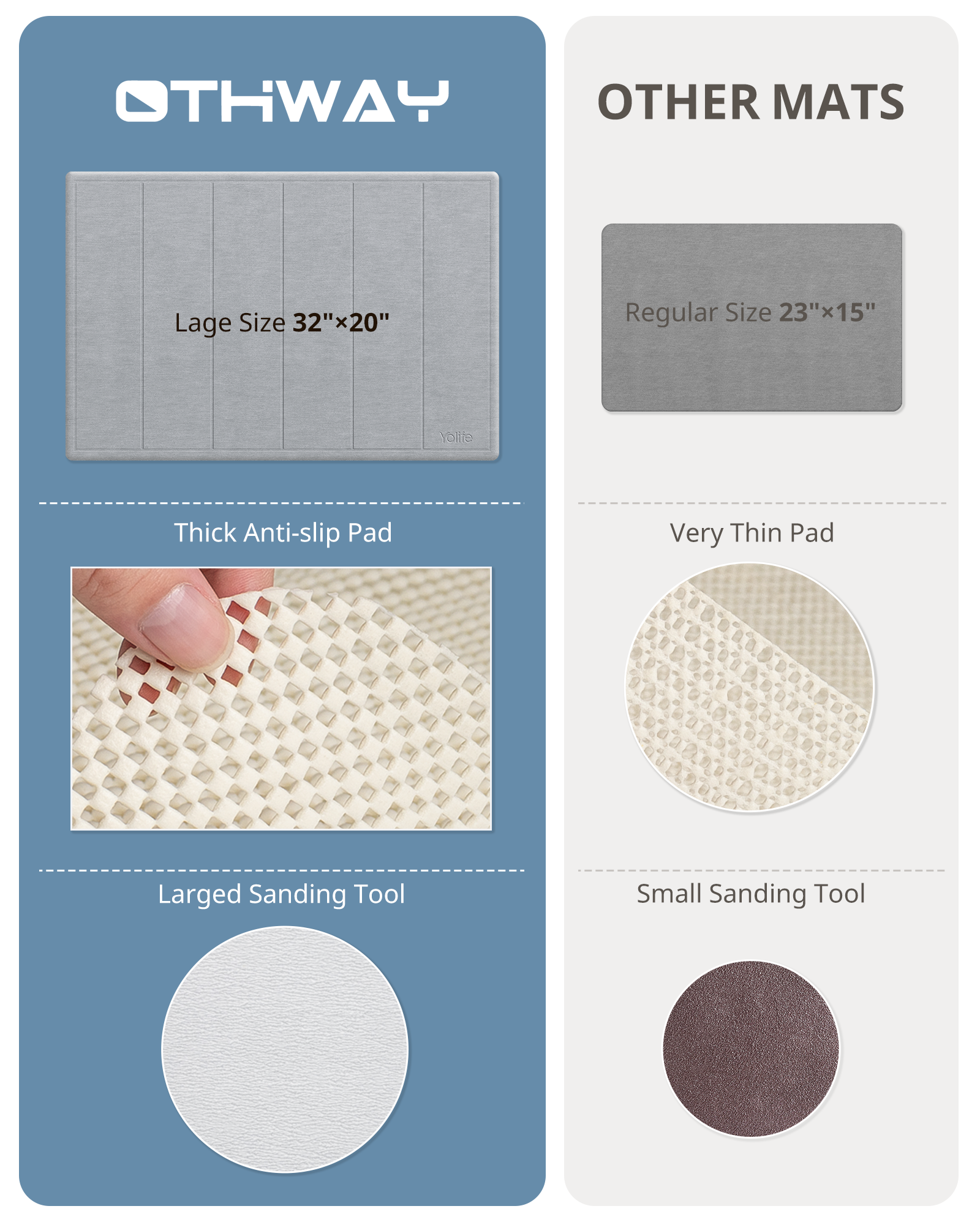 Yolife 32"x 20" Diatomite Bath Mat, Super Absorbent Quick-Dry Stone Bathroom Floor Mat, Non-Slip Natural Diatomaceous Earth Shower Rug, Large Bath Pad for Bathroom, Kitchen, Entryway, Easy to Clean